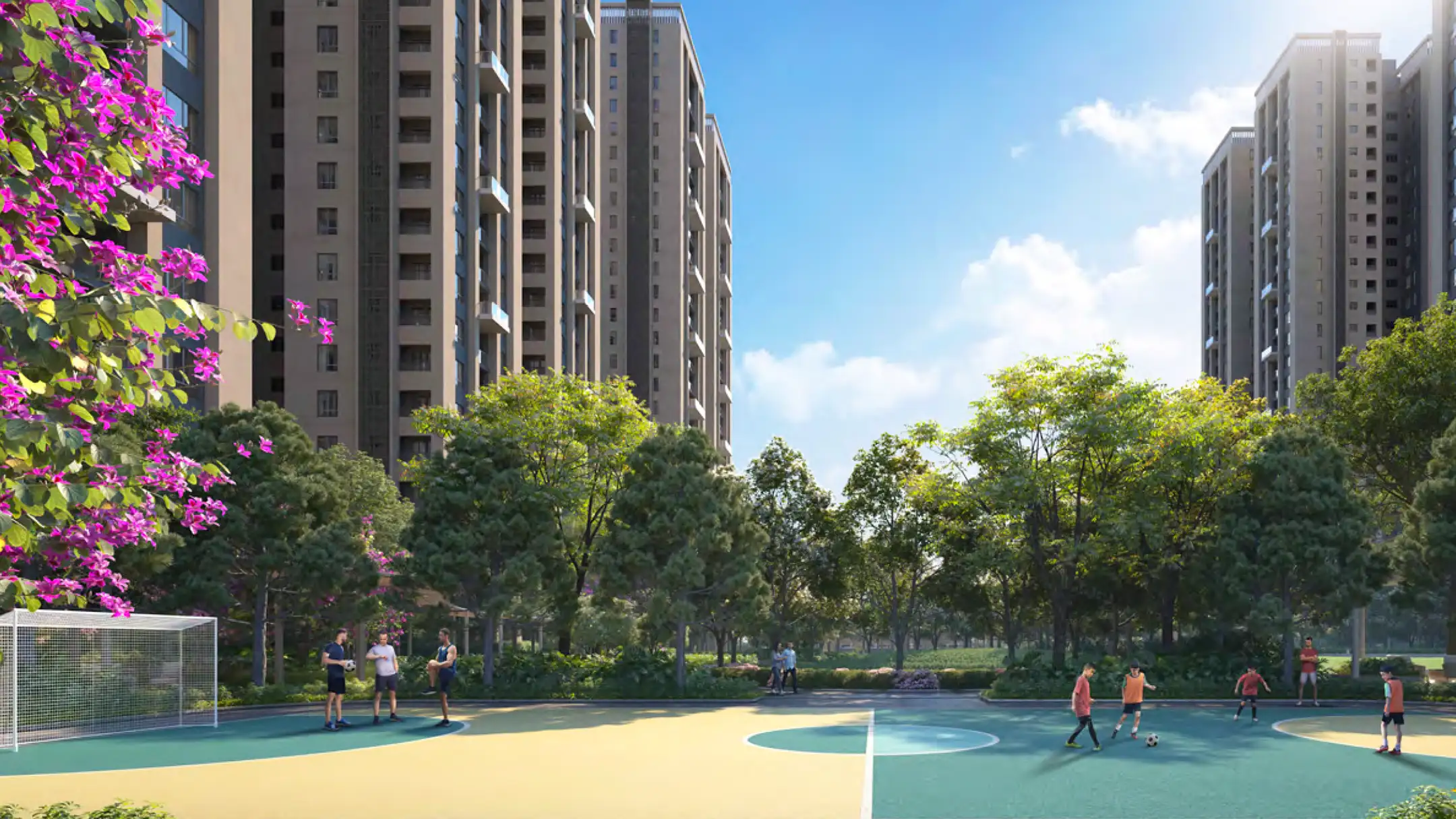 Enjoy 70+ world-class amenities at Ambuja Utpalaa, including an infinity pool, aqua gym, rooftop cabanas, gymnasium, yoga deck, coworking space, banquet halls, kids’ play zones, jogging track, gardens, theatre, sports courts & more!